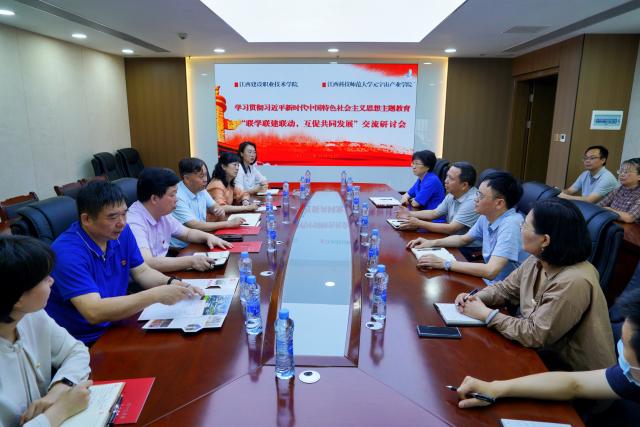 6月9日上午,江西建设职业技术学院党委和江西科技师范大学元宇宙产业学院党委联合开展主题教育联学联建联动活动。学院党委书记黎洪阳、院长李永刚与江西科技师范大学元宇宙产业学院党委书记涂晓群一行围绕推进职普融通、产教融合、科教融汇进行了深入交流研讨。在家院领导、学院主题教育办成员参加交流座谈会。