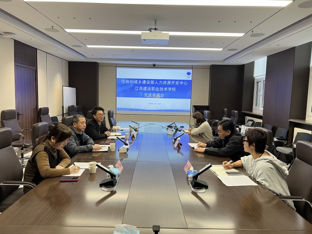 11月5日上午,黎洪阳一行专程拜访了住房和城乡建设部人力资源开发中心,与中心主任李明、中心副主任杨飞、职业培训部副处长温欣等领导进行了座谈。双方围绕职业技能竞赛体系构建、专业学科建设优化、建筑领域职业技能培训提质扩容、双高建设等核心议题展开深入交流。黎洪阳表示,学校将积极依托部委平台,紧密加强与全国住房和城乡建设职业教育教学指导委员会及其下设各专业教学指导委员会的联系与合作,重点在乡村建设工匠培训、竞赛与技能人才培养等领域发力,将国家层面的政策导向与行业需求精准融入人才培养全过程,切实提升服务行业和乡村振兴战略的能力。