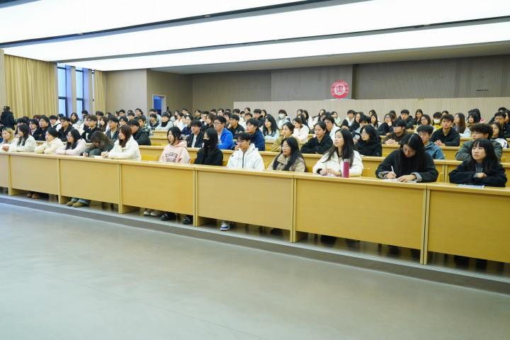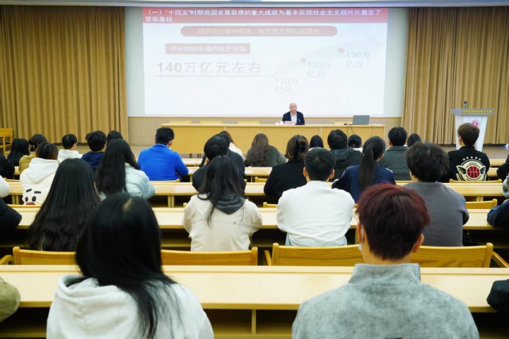 伍有其围绕党的二十届四中全会精神核心要义,结合自身工作经验,从全会召开的重大意义、核心内容以及“十五五”的实践要求等方面展开深入解读。他以精准透彻的论述、生动鲜活的案例,将宏大的政策理念与南昌县小蓝经开区高质量发展实践相结合,让在场师生对全会精神有了更为全面、深刻的理解。