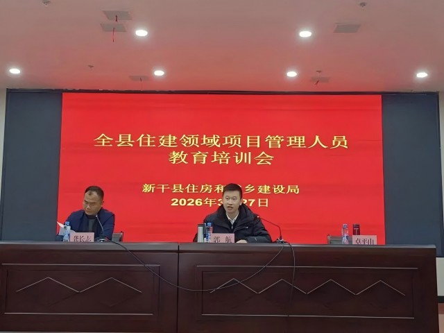3月27日至28日,2026年新干县住建领域项目管理人员教育培训班在新干县行政服务中心总工会会议室举办。本次培训班由新干县住房和城乡建设局主办,我校承办。新干县住房和城乡建设局副局长龚长志、学校纪委书记郭航等出席开班式。新干县在建项目的施工单位项目经理、监理单位总监、建设单位项目负责人、园区监管人员、城控集团项目负责人及本地建筑企业负责人等,共计130余名住建领域项目管理人员参训。